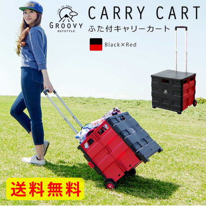 Groovy キャリーカート 折り畳み式 フタ付きキャリーカート BBQ 海水浴 レジャー おしゃれ キャンプ用品 ベッド キャンプグッズ 組み立て簡単、コンパクト収納できる 折りたたみ式のキャリーカートです。 車などへの重い荷物の持ち運びに困ったことはありませんか? イベントごとに重い荷物を運んでる、帰りには荷物が必ず多くなる、 毎度のことなので、腰を痛めてしまいそうですよね。 このキャリーボックスは大容量収納で2輪のキャスター付きで運搬ラクラク♪ キャリーがあればどこへでもアクティブに出かけていけます! 蓋つきなので簡易的な雨除けや、中身を見られたくない時のプライバシーの保護やにも使えます! 簡易的な机としても使えて、コスパが高い商品です。 ■カラー:ブラック×レッド ■製品重量:2.1kg 耐荷重30kg ■サイズ(外寸): (収納時)W43xD7xH40cm (使用時)W43xD37xH40.5cm(取手除く)(取手)W16.2xH57cm ■サイズ(内寸): W40xD31xH34cm ■耐荷重:30kgまで 【セット内容】 ・折りたたみカート×1 ※セット内容以外は付属しません ※商品改良のため仕様及び外観は予告なく変更する場合があります。