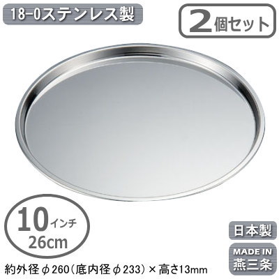 ◆【日本製・燕三条製】 18-0ステンレス製のピザパンです。 ◆ピザをオーブンで焼くときのトレーです。 ◆ピザパンにのせてピザを焼けば、チーズ等の具がオーブン内部 にこぼれるのを防ぎます。 ◆オーブン用天板としてもお使いいただけます。 ◆耐腐食性優れた18-0ステンレス製。丈夫で長持ち! ◆ピザ店などでの業務用はもちろん、ご家庭でのピザ作りにも! 他のピザパンはこちら 他の製菓用品はこちら 【商品仕様】 ●規格/10インチ(26cm) ●商品サイズ/約外径φ260(底内径φ233)×高さ13mm ●材質/18-0ステンレス ●日本製(新潟県燕市) ※メーカーに在庫がある場合は2-4営業日以内に発送させて いただきますが、稀に在庫がない場合もございますので、 お急ぎの場合はお問い合わせください。