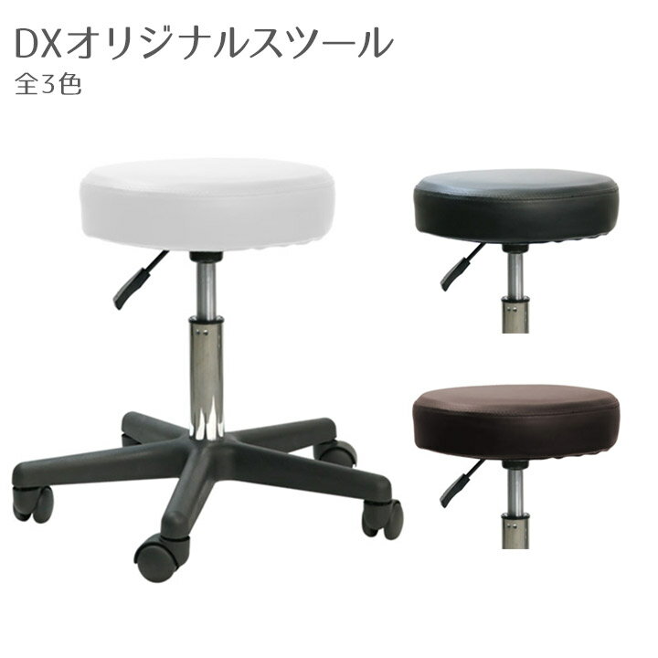 《商品名》 DXオリジナルスツール 全3色 f010009 《商品説明》 座り心地の柔らかいしっかりした座面のクッションが特徴。 ガス圧昇降レバーで高さ調節も簡単!(高さ44-58cm対応) ◆サイズ ・高さ:約44?58cm ・座面直径:約35cm ・座面厚み:約6cm ・脚部直径:約52cm ◆材質 ・座面内部:型抜きウレタン ・座面の表面素材:高級PVCレザー ・脚部:プラスチック ◆重量:約4kg 組立の有無:脚部組立必要 《使用場所》 エステサロン、美容室、ヘアサロン、キッチン、病院、作業場、リビング、ダイニング、オフィスなど ※写真はできるだけ実物に近い色を表示できるよう努めておりますが、ご利用のPCやスマホなどご使用の機器の都合により、若干差異が生じますのであらかじめご了承ください。 ※商品により仕様(デザイン、サイズ、カラーなど)に多少のバラツキがある場合がございます。 ※在庫は事前に確保しておりますが、輸入商品につき、万一品切れ又は長期欠品の場合はご了承下さい。座り心地のよい柔らかい座面クッションです。 昇降式(ガス圧)レバー付きだから、高さ調節も簡単! 商品説明高さ44?58cm座面の直径35cm座面の厚み約6cm 脚部の直径52cm材質 座面クッション:型抜きウレタン座面の表面:高級PVCレザー脚:プラスチック重量約4kg※座ったままでもスムーズに動くキャスターなので、女性でも軽く動かすことができます。 色 ■ ホワイト■ ブラック■ ホワイト 使用場所エステ、サロン、ネイルサロン、オフィス、事務所、美容院、病院、整体院、クリニックなど 業務用、プロ用、ガレージ、作業場、アトリエ、キッチン、リビング、ダイニング、学校、子供部屋、本舗、店舗、カフェ、幼稚園、保育園、託児所、カウンター、受付など 場所を選ばないシンプルなデザインなので様々なシーンでご使用いただけます。組立 脚部組み立て必要※パーツ同士をはめ込むだけですので、どなたでも簡単に組み立て可能です。