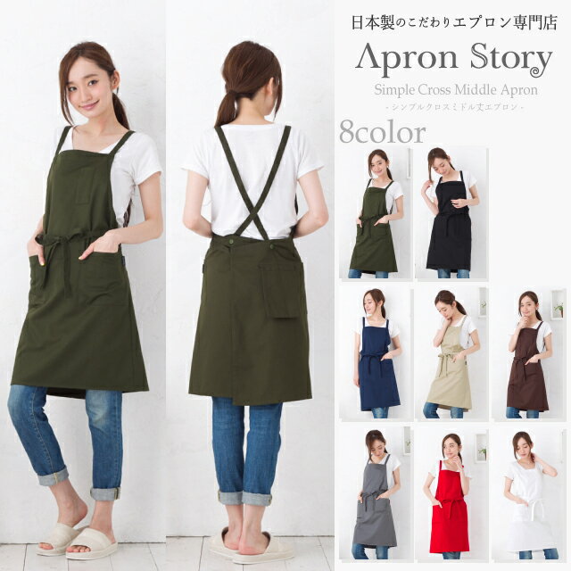 ギフト対応について ※メール便(ゆうメール)対応可能。 1枚の場合はA4発送。 2枚の場合はB4発送。 こちらの規約をご参照の上、メール便ご希望の方は 配送方法にメール便(ゆうメール)をご選択ください。 5250円以上の場合は宅急便をご選択ください。 メール便の規約についてはコチラをご確認ください シンプルなデザインとベーシックカラーの豊富なバリエーションのミドル丈のクロスエプロン。 しわになりくいと人気の綿ポリ素材で、シンプルなデザインですが、ペン差し、左右のポケット、スマホサイズの後ろのポケットと便利で使いやすさを重視、またボタンで2段階に調節できる肩紐や、 身幅が大きめに作られているのでお尻がすっきり隠れ、大きめサイズの方でも着用が可能です。 デザインや生地にこだわった、丁寧な作りの日本製エプロン。工場直営のエプロン専門店ならではの高品質エプロンは、ギフトやプレゼントにも人気です。 品質 ポリエステル65% 綿35% 素材説明 しっかりとした風合いのしわになりくい生地 生地の厚さ 普通 カラー カーキ、ブラック、ネイビー、ベージュ、ブラウン、グレー、レッド、ホワイト モデル 身長167cm 7号 サイズ フリー 寸法 総丈:約80.5cm 身巾:約97cm 製造 日本 その他 ・写真の関係で実際の商品と色合いが異なることがございます。・火に近付けますと、繊維が溶けたり、燃えたりする恐れがありますご使用の際には十分に注意して下さい。・洗濯の際は漂白剤を使用しないで下さい。・生成りやパステルカラーなどの淡色製品は色が変わる心配ありますので無蛍光洗剤を使用して下さい。・濃色品は色落ちの心配がありますので、単独で洗って下さい。タンブル乾燥はお避け下さい。・長時間濡れたままだと移染するのでご注意下さい。・タンブル乾燥はしないで下さい。