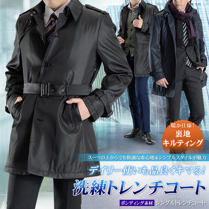 快適な着心地&裏地キルティングで防寒性に優れた実用派コート! シンプルスタイルでビジネスからカジュアルまで上品に着こなせます。 ? ボンディング素材とは ? ボンディング素材とは、二種類の異なった生地を特殊接着樹脂で張り合わせて 一枚の生地にする加工技術です。ボンディング加工を施すと生地表面の形状の 強度が増し、風を通しにくく軽くて暖かいのが特徴です。 【素材】 表地:ポリエステル100% 裏地:ポリエステル100% 【スタイル】 5ツボタン シングル 総裏仕立て ハーフ丈 ボンディング加工 ウエストベルト センターベント カフストラップ エポレット ケープドバック ガンパッチ ネックストラップ 撥水加工 裏地キルティング 【カラー】 ■A:ブラック/シャドーストライプ (品番)L-AZC-19-990 ■B:ネイビー/シャドーストライプ (品番)L-AZC-19-106 【対応シーズン】 秋冬物(秋物 冬物) 【取扱サイズ】 S M L LL 3L 【ブランド】 Le orme 【キーワード】 メンズ (男性用・紳士用) スーツコート コートメンズ ビジネスコート 秋冬物 WARM BIZ (ウォームビズ) ビジネススタイル MARUTOMI マルトミ 襟高 お洒落 おしゃれコート トレンチコート シングル ハーフ 大人カジュアル リクルートコート ブラック 黒 ネイビー 紺 暖かい 防寒性 通勤 キルティング ※色や質感をなるべく実際の商品に近いかたちでお伝えすべく撮影及び画像処理には気を配っておりますが、ブラウザやモニタなどお使いのパソコン環境により多少異なる場合がございます。あらかじめご了承くださいませ。?秋冬物?ボンディング素材・シングルトレンチコート