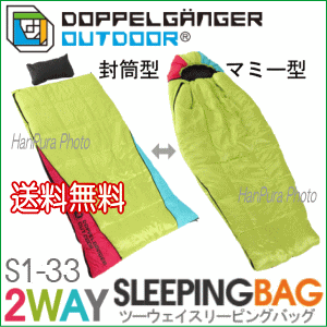 商品画像は実際のカラー・デザインが異なって見える場合 があります。またメーカーにてお断り無く仕様を変更する場合等がございます。 代引発送が出来ない地域がございますので予めご了承願います。同商品4個までは同梱発送可能となります。他商品との同梱発送ができない場合もございます。 ※ご注文日時や内容によっては購入履歴からのキャンセル及び修正を受け付けることができない場合がございます。 ※一部の商品でWEBページとロゴデザインが異なっている場合がございますが、予めご了承いただけますようお願い申し上げます。気温や好みに応じて、封筒型・マミー型を切り替え可能な2WAY寝袋。 足元のファスナーを開けば封筒型、閉じればマミー型と簡単に2つの寝袋を切り替えることができ気温や好みに応じた使い方のできる2WAYスリーピングバッグです。マミー状態での最低使用温度は-8℃。一方、暑い時期にはファスナーを全開にしてマットや掛け布団として使うこともできるので幅広いシーンで活躍します。 ■最低使用温度とは DOPPELGANGER OUTDOORでは以下の方法で最低使用温度を設定しています。気温に応じた一般的な服装を前提に表示の温度まではご使用いただけるという目安です。風速、湿度、服装等の使用条件や体質などにより体感温度には個人差があるのであくまで目安としてご検討下さい。 1. 実験室の温度を25℃にする。 2. 寝袋内の温度を人間の体温に近い37℃にする。 3. 部屋の温度を徐々に下げていく。 4. 寝袋内の温度が5℃以上に保たれている範囲を最低使用温度として設定する。 カラー ライムグリーン×ターコイズブルー×ピンク サイズ 約W1080×H2220×D30mm 収納サイズ 約高さ420×直径310mm 最低使用温度 -8℃ 重量(付属品含む) 約3000g 材質 表地、裏地:ポリエステル、中綿:ポリエステル(ホローファイバー※1) 付属品 取扱説明書、専用コンプレッションバッグ JAN CODE 4582143466470 商品管理ID bs-0319 ※製品等の色はご使用になるモニターや設定によって若干の違いが発生する場合があります。 ※製品改良のため予告なくデザイン・仕様を変更する場合があります。 ※1 ホローファイバー:糸の中に空間を作り繊維そのものの中に大量の空気を閉じ込めた中空構造糸。軽く暖かいのが特長。 ※ご注文のお客様へのお知らせ※ ※同商品4個までは同梱発送可能となります。他商品との同梱発送ができない場合もございます。 ※代引発送が出来ない地域がございますので予めご了承願います。