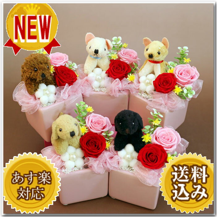 【楽ギフ_包装】【楽ギフ_のし】【楽ギフ_のし宛書】【楽ギフ_メッセ】 サイズ 奥行き9cm × 横10cm × 高さ12cm 犬種によって高さが若干違います 花 材 プリザーブドフラワー、ドライ等 花 器 ピンクの四角い陶器(6cmキューブ型) の し ラッピング後に短冊型の熨斗を貼ります カード 無料でお付けいたします。コメント欄にお書き下さい。 ラッピング ご自宅用でも、すべて無料でラッピングいたします。(写真参照ください) お願い 当社商品はすべて、フラワデザイナーが手作りで作成しております。 若干のサイズ違い、ラッピングのリボン違いなどは、ご了承下さい。 おすすめのご利用用途です。ご参考までにどうぞ♪ 誕生日 カード付き 即日発送 母の日 父の日 敬老の日 還暦のお祝い 還暦祝い 結婚祝い 送別 退職祝い 結婚記念日 メッセージカード 贈物 お礼 ご挨拶 お返し 記念日 結婚 ウエディング 引き出物 内祝い お祝い 新築 還暦 開店祝い 開業祝い 出産祝い 感謝の気持ち ビジネス 出産祝い お年賀 お年始 いい夫婦の日 アレンジメント ホワイトデー バレンタインデー 卒業 入学 告白 送別会 歓送迎会 新築祝い 改装祝い 退職祝い 引っ越し祝い 入学祝 ご自宅用 ぬいぐるみ 歓迎 退職 開店 オープン 開業 祝い 移転祝い フラワーギフト 公演 楽屋見舞い お中元 お歳暮 サマーギフト 迎春 お年始 正月 お正月 還暦 開店祝い お悔やみ プリザ 送料無料 即日 花 限定 即日 玄関 ベッドルーム 春 スプリング アレンジ プレゼント プリザーブドフラワー プリザーブド プリザーブ X'mas パーティ 結婚式 フォーマル バラ ローズ クリスマス 趣味 癒し パープル ブルー ピンク オレンジ 赤 黄 青 白 楽ギフ_包装楽ギフ_のし楽ギフ_のし宛書楽ギフ_メッセサイズ 奥行き9cm × 横10cm × 高さ12cm(器は6cm四角)犬種によって高さが若干違います 花 材 プリザーブドフラワー ドライ等 花 器 ピンクの四角い陶器(6cmキューブ型) の し 短冊熨斗をラッピングに上に貼ります カード 無料でお付けいたします。コメント欄にお書き下さい。 ラッピング ご自宅用でも、すべて無料でラッピングいたします。(写真参照ください) お願い 当社商品はすべて、フラワデザイナーが手作りで作成しております。 若干のサイズ違い、ラッピングのリボン違いなどは、ご了承下さい。 @下記地区のみ300円送料がかかりますこと、ご了承ください。金額を訂正したメールを後程お送りいたします。北海道・沖縄県・東北地区(青森・秋田・岩手・山形・宮城・福島)