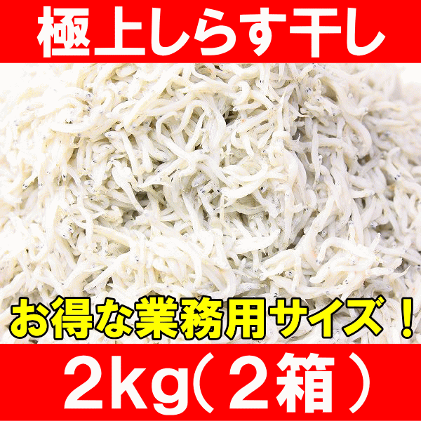ギフトには、「のし」をお付け出来ます! 商品名 しらす干し2kg(シラス干し) 原産地/製造地 静岡県、兵庫県等(しらすは、時期により美味しい産地をセレクト) 内容量 2kg・1kg×2箱 原材料 いわし稚魚(しらす)、食塩 賞味期限 パッケージに記載 保存方法 要冷凍−18℃以下で保存。 注意事項 ※解凍後は冷蔵庫にて保存し、お早めにお召し上がり下さい。※産地・パッケージ等は予告なく変更する場合がございます。品質・グレードは変わりありません。 詳細説明 ふわっふわのしっとり柔らかなしらす干し。カルシウムも豊富♪ ●超新鮮なしらす干し。スーパーのシラスとは別格の美味しさ。一度食べれば違いに驚きます!自然の旨さでカルシウム豊富な極上しらす。●たっぷりメガ盛り1kg。業務用のお買い得品! 築地市場で厳選の王様セレクト♪ 送料無料商品と同梱、又は合計8,000円以上ご購入で送料無料!⇒送料・配送についてお買いものガイドはこちら!<今月の特売品や、限定商品が盛り沢山!築地の王様トップページも要チェックです!コチラからどうぞ♪>楽天ランキング1位を獲得!業務用サイズのメガ盛り2kg★【楽天市場 ちりめん・しらすランキング1位達成】【楽天市場 魚介類・シーフード>ちりめん・しらすランキング1位達成】●ふんわり柔らかな「極上しらす干し」極めが細かくふんわり柔らか一級品!一般的にしらす干しと呼ばれるのが「しらす干し」。獲れたて新鮮な鰯の稚魚を茹でて軽めに干したもので、ふんわり柔らかな食感と旨味が持ち味。ちなみに、獲れたてシラスを茹でただけのものが「釜揚げしらす」、更によく干して堅めに仕上げたものが「かちり」。ちりめんじゃこの代表的な品々です♪ふんわり柔らかなしらすをたっぷり業務用サイズでお届け!これはお買い得すぎます♪●「極上しらす」の定義は、色、艶、サイズが決め手!・色=ちりもん(小さな海老や蟹などの雑魚)の混ざりが極力少ない。・艶=しらすの乾燥具合と仕上がりの艶が良いこと。・サイズ=小さめの魚体でサイズが揃っている。極上のシラスが泳いでいるわけでも、貧弱なシラスが泳いでいるわけでもありません。ふんわり柔らかな最高級の品が極上しらす干しは、以上の項目を基本に厳選吟味しています。●日本有数のシラスの産地から入荷静岡県/舞阪産・用宗産、伊勢湾産、瀬戸内海産、常磐産・・・など、日本有数のシラスの産地から入荷するシラス中より、入荷時期により最上級の品を厳選! ピンキリあるシラス干しの中から、「本当に美味しい」と言って頂けるしらすを厳選吟味いたします。たっぷり入った業務用1kg箱入りでのお届けだからとってもリーズナブル!是非ご家族で気がねなく、たっぷりとご賞味頂きたい逸品です!しらすおろし・しらすパスタ・しらすごはんしらすサラダ・しらす軍艦など、様々なしらす料理レシピにご活用ください♪たっぷり贅沢にご使用頂けます!!お召し上がり頂いたお客様の声はコチラ!▼業務用パッケージでお届けします▼1kg×2箱・合計2kgとなります。