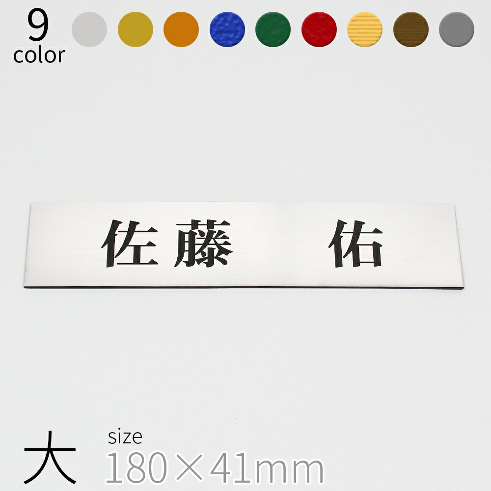 アクリルネームプレート表札【長方形 大】 シンプルなアクリル製ネームプレート。表札にはもちろん、子供部屋・オフィスのルームプレート・ドアプレートとしても最適です。豊富なカラーと書体の中からお好みをお選びください。 サイズ W180×H41×D1.5mm 材質 アクリル板 ※ステンレス製ではございません。ご注意ください。 文字加工 レーザー彫刻(二層になったプレートの表面層を削り下層の色で表現しています) 屋外対応 屋外使用可能です。 カラー(柄) ステンレス黒、ゴールド、ブロンズ、マーブルブルー、マーブルグリーン、マーブルレッド、木目カシュー、木目コナ、ニッケル 文字加工 レーザー彫刻(二層になったプレートの表面層を削り下層の色で表現しています) ご注文備考 ・プレートの裏面には仮留め用に両面テープを貼ってお送りいたします。ご不要な場合はご注文時の備考欄にその旨ご連絡ください。・英文書体「スクリプト」「レージ」はすべて大文字にすると読みにくくなるため、大文字だけでのご注文は頭文字のみ大文字に変更させて頂いております。 商品コード EP_NAME03 配送について ▼メール便(ゆうメール)送料0円 配送方法にメール便をお選びなら全国どこへでも送料無料!です。 ・メール便はポストへの投函が基本的な扱いとなります。ポストに入り切らない形状のものでお留守の場合は不在票が投函されます。 ・通常2-5日程度でのお届けとなります。(日曜・祝日の配達を行わない場合がございます) ▼ヤマト運輸宅急便 500円 全国一律500円にて承っております。 ※配送方法に宅配便をご選択いただいた場合、ご購入時には合計金額に反映されておりませんのでご注意ください。ショップ側で代金を加算させていただき、メールにて最終的なご請求金額をご連絡いたします。 ▼代金引換 お支払方法に代金引換をお選びの場合、宅急便での配送となります。 この場合、送料・代引き手数料あわせて840円を別途頂いております。(送料500円+代引き手数料340円) ※ご購入時に送料500円が合計金額に反映されておりませんのでご注意ください。ショップ側で代金を加算させていただき、メールにて最終的なご請求金額をご連絡いたします。