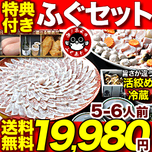 商品番号 SPFG101CP 商品名 国産養殖とらふぐ・セット(5-6人前)特典付き/送料無料 内容量 とらふぐ刺身 約170g、鍋用上身 約300g、鍋用アラ 約600g、選べる特典品1点、ふぐ皮湯引き 約100g、松前漬1袋、ツミレ 12個、フグヒレ 5〜6枚、ポン酢、薬味 原材料 材料別に記載 お召し 上がり方 到着したら、なるべく早めにお召し上がりください。詳しいお召し上がり方は、同梱のレシピをご覧下さい。 産 地 山口県/長崎県 製造者 有限会社きらく:山口県長門市仙崎4137-3 消費期限 保管方法 到着後2日間・冷蔵保存 送料 配送方法 お届け日 ご注文日より3日を目安 ※メールにてご連絡いたします。 ギフト対応 【楽ギフ_のし宛書】【楽ギフ_メッセ】【楽ギフ_メッセ入力】【smtb-kd】