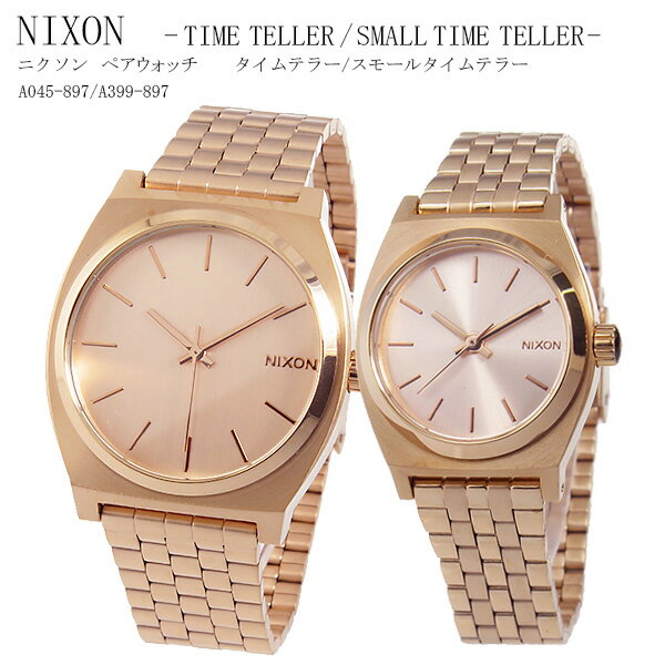 ニクソン タイムテラー クオーツ ペアウォッチ 腕時計 A045-897/A399-897 ローズNixonは、カリフォルニア州エンシニータスに拠点をおいて、サーフ、スケート、スノーの3Sスポーツをする人々の間で求められるライフスタイルウォッチをテーマに、Andy Latts(アンディ)とChad Dinenna(チャド)がスタートさせたウォッチカンパニーです。’98年秋に、世界10カ国以上のボードショップで一斉に販売をスタートさせました。 なぜ時計なのかというと、単に従来のものに満足していなかったからなのです。サーフ、スケート、スノーという共通した部分を持つ人達が、常にスタイルを持った生活を目指して欲しいと、これまでにはなかったコンセプトで時計を作りたかったのです。 Nixonの作り出す時計は、Nixonの為のみのNixon仕様、つまり全てがカスタムメイドなのです。それぞれ全く違う個性を持つライダー達の為に、様々なタイプのモデルを用意し、彼らの意見を取り入れて、特異で、機能性を重視した時計を作り上げました。ライダー達は広告や商品開発の方向付けにも大いに関わっています。プレゼントやギフトにもおすすめ。サイズメンズ:(約)H34×W34×D9mm(ラグ、リューズを除く)、重さ(約)90g、腕回り最大(約)19cm、腕回り最小(約)15cm / レディース:(約)H24×W24×D8.5mm (ラグ、リューズを除く)、重さ(約)50g、腕回り最大(約)16.5cm、腕回り最小(約)13cm素材ステンレス(ケース)、ステンレス(ベルト)仕様クオーツ、100m防水、カラー:ローズゴールド(文字盤)、ローズゴールド(ベルト)付属品専用ケース・保証書・取扱説明書保証期間1年間ニクソン タイムテラー クオーツ ペアウォッチ 腕時計 A045-897/A399-897 ローズニクソン NIXON TIME TELLER スモール タイムテラー SMALL TIME TELLER 時計 ウォッチ カジュアル ファッション お揃い ペアセット 人気 ブランド プレゼントNixonは、カリフォルニア州エンシニータスに拠点をおいて、サーフ、スケート、スノーの3Sスポーツをする人々の間で求められるライフスタイルウォッチをテーマに、Andy Latts(アンディ)とChad Dinenna(チャド)がスタートさせたウォッチカンパニーです。’98年秋に、世界10カ国以上のボードショップで一斉に販売をスタートさせました。 なぜ時計なのかというと、単に従来のものに満足していなかったからなのです。サーフ、スケート、スノーという共通した部分を持つ人達が、常にスタイルを持った生活を目指して欲しいと、これまでにはなかったコンセプトで時計を作りたかったのです。 Nixonの作り出す時計は、Nixonの為のみのNixon仕様、つまり全てがカスタムメイドなのです。それぞれ全く違う個性を持つライダー達の為に、様々なタイプのモデルを用意し、彼らの意見を取り入れて、特異で、機能性を重視した時計を作り上げました。ライダー達は広告や商品開発の方向付けにも大いに関わっています。プレゼントやギフトにもおすすめ。Item Informationサイズメンズ:(約)H34×W34×D9mm(ラグ、リューズを除く)、重さ(約)90g、腕回り最大(約)19cm、腕回り最小(約)15cm / レディース:(約)H24×W24×D8.5mm (ラグ、リューズを除く)、重さ(約)50g、腕回り最大(約)16.5cm、腕回り最小(約)13cm仕様ステンレス(ケース)、ステンレス(ベルト) クオーツ、100m防水、カラー:ローズゴールド(文字盤)、ローズゴールド(ベルト) 1年間付属品専用ケース・保証書・取扱説明書