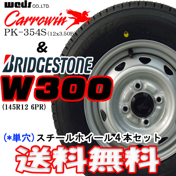 タイヤ 【メーカー】 ブリヂストン 【銘柄】 W300 【銘柄】 ダブルサンビャク 【サイズ】 145R12 6PR 【分類】 スタッドレスタイヤ 【状態】 新品/日本製 【製造年】 2017年製造(周期指定は不可) ホイール 【サイズ】 350-12 【ピッチ】 PCD 100 【穴数】 4穴 【インセット】 +45 【メーカー】 WEDS (ウエッツ) 【銘柄】 キャロウィン 【名称】 PK-354SN 【カラー】 シルバー 【状態】 新品 【ハブ径】 59.5 備考 ■ 組み込み済 ■ バランス調整済(打ち込みウェイト) ■ 窒素充填(約3kg)※指定不可 ■ 数量1で1台分(4本セット) ■ お車に装着するだけの状態です ■ 送料無料(沖縄 離島除く) 納期 在庫は十分に有るのですが・・・・ 「ホイールセット」の発送は ●通常は当日?3営業日内発送 (日曜日除く) ●11月?1月の「ご注文集中時」 発送まで「4、5日前後」かかる場合があります ホイールセット納期お問い合わせ tel 024-943-0064 「楽天を見て」ご希望の商品名をお伝えください (少人数の為、お電話がつながりにくい場合がございます) 適合車種 ★★ホイール・マッチング代表例★★ タイヤサイズは 145R12 6PRとなります。 ご使用のタイヤサイズをご確認下さい。 (カッコ内は車検証記載の「型式」となります。) トヨタ ◎ピクシストラック(S500U/510U) ※ピクシストラック(S201U/211U)はキャリパー干渉の為装着不可。 ※ピクシバン(S321M/331M)はキャリパー干渉の為装着不可。 適合ホイールセット(マルチホイールPK-351F)はこちらをクリックしてください。 ニッサン ◎NT100クリッパー (DR16T) ◎NV100クリッパー (DR17V./64V) ●NV100クリッパー(U71/U72)は装着走行問題ございませんが 付属のセンターキャップの装着ができません ミツビシ ◎ミニカ(H42V.47V.21A.22A.31A.32A.32V) ◎ミニキャブトラック(DS16T/U61T/62T) ◎ミニキャブバン(DS17V.64V.U61V.62V) ◎ミニキャブMiEV(u67v/68v)→純正 145R12 8PR の為、車検不可 ※ミニカ(H21A・22A・31A・32A・32V・42V・47V) ※ミニキャブトラック(U61T・62T) ※ミニキャブバン(U61V・62V) ※ミニキャブMiEV/トラック(U67V・68T) 装着走行問題ありませんが、センターキャップの装着不可です マツダ ◎スクラムトラック(DG16T・63T) ◎スクラムバン(DG17V/64V) ホンダ ◎アクティバン (HA3.4.6.7.8.9) ◎アクティトラック (HH3.4.5.6) ◎ストリート (HH3.4) ◎ザッツ(JD1.2)→純正13インチ車不可 ◎トゥデイ4WD (JA5.JW4) ◎ライフ(JB1/JB2) ◎バモス (HM1?4) ◎バモスホビオ (HJ1 HJ2) ※アクティバン・トラック・ストリート(HH3・4・5・6/HA3・4・6・7・8・9/) ※バモス(HM1?4) ※バモスホビオ(HJ1・2) 装着走行問題ありませんが、センターキャップの装着不可です。 ◆純正 「8PR」 の場合 車検は通らない可能性があります ◆ホンダ純正球面ナットがそのままご使用いただけます スバル ◎サンバーディアス(KV3.KV4.TV1.TV2) ◎サンバートラック(KS3.KS4.KV4.TT1.TT2.S500J.S510J) ◎サンバーバン(KV3.KV4.KW3.TV1.TV2) ダイハツ ◎アトレー (S220V.230V) ◎エッセ (L235S/245S) ◎オプティ (L800S.810S) ◎ハイゼットカーゴ (S200V,210V) ◎ハイゼットデッキバ (S200W.210W) ◎ハイゼットトラック (S500P/510P) ◎ミラ(L250S/260S/700S/710S) ◎ミラバン(L250V/260V/275V) ◎ムーヴ(L900S)→純正13インチ車不可 ※ハイゼットカーゴ (S320V/321V/330V/331V)は キャリパー干渉の為装着不可。 ※ハイゼットトラック(S200P/201P/210P/211P)は キャリパー干渉の為装着不可。 ※ハイゼットデッキバン(S320W/321W/330W331W)は キャリパー干渉の為装着不可。 ※ハイゼットパネルバン(S200C/20C/310C/211C)は キャリパー干渉の為装着不可。 適合ホイールセット(マルチホイールPK-351F)はこちらをクリックしてください。 スズキ ◎アルト (HB11S.HA24S.23S.22S.21S.11S.12S) ◎アルトバン (HC11V.HD11V.HA23V.24V.12V) ◎エブリィ (DE51V,DF51V)←PCD100のみ DA52V,62V,64V,DA17V,DB52V) ◎キャリィ (DC51T,DD51T)←PCD100のみ DA52T,63T,65T,16T,DB52T) 備考 ■PCD 100の為、 PCD 110(古いダイハツ車)PCD114.3(古いスズキ車、三菱車)には一切装着できません ■上記ホイールマッチングは「ホイール」の装着例となります ■タイヤのサイズをご確認ください ■純正サイズからのインチダウンができない車種がございます ■古い車種の型式は記載していない場合がございます