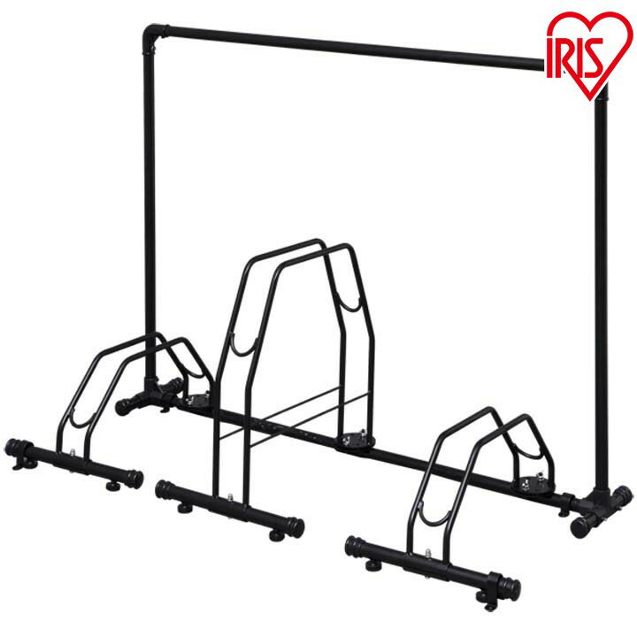 収納スペースに合わせてスタンド角度が3段階に調整できる自転車スタンドです♪地面の凹凸に合わせて高さを調節できるアジャスター付きです!スタンドが動かないように地面と固定する部品が4個付いています。ネームプレートや鍵の取り付けに便利なパイプが付いています。●商品サイズ(cm)幅約120×奥行約56×高さ約104●重量(kg)6.29●タイヤ対応サイズ幅:55mm以下大きさ:20〜27インチ●自転車3台分●材質スチール、ABS樹脂