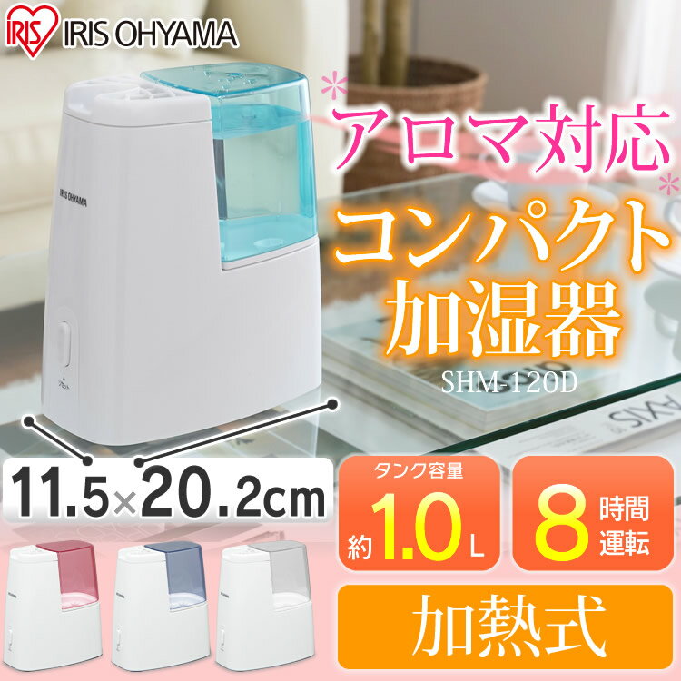 どんな場所にも置けるスリムデザインで、デスクやリビングテーブル上にスッキリ置ける加熱式加湿器です。 カラーは4色展開で、子供部屋や書斎などを加湿するのに対応できます。 アロマトレー付で、アロマオイルを入れて香りを楽しむことができます。●商品サイズ(cm):幅約11.5×奥行約20.2×高さ約22.3(コード含まず) ●重量:約700g ●材質:ABS樹脂、ポリプロピレン ●加湿方法:加熱式 ●電源:AC100V(50/60Hz) ●消費電力:100W ●最大加湿量:約120ml/h ※1 ●加湿時間:約8時間 ●適応床面積:卓上 ●タンク容量:約1.0L ●コードの長さ:約1.4m ●電気代:1時間当たり約2.7円 ※2 ※1:加湿量は、室内20℃、湿度約50%の場合の目安です。 ※2:電気代は1km/hあたり27円を目安に計算した場合です。 ●カラー:グリーン 、ブルー 、ピンク、クリア