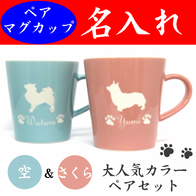 ギフト対応について 【イラスト+お名前】を彫刻致します。 文字数は1行で、漢字ひらがなの場合は4文字まで英字の場合は8文字までです。 ※お名前の前と後に足型を彫刻します。(見本どおり) わんにゃんの可愛さにひとめぼれ!発色きれいなマグカップ♪ サイズ:口径76×高さ85(mm) 230ml ペアセット(空・さくら) 紙箱付き お名前入りの素敵なマグカップで美味しく召し上がって下さい。 プレゼントや贈り物などに最適です。 オススメ商品です♪ 『名前入りオリジナルプレゼントは一生の記念になります』 ●当店商品のご利用一覧● ☆名入れ(名前入り)オリジナル商品/プレゼント・ギフト・お祝い・贈り物に人気 金婚式 還暦祝い 退職祝い 結婚祝い 結婚式 結婚記念日 定年 定年退職 長寿 古希 喜寿 傘寿 米寿 卒寿 白寿 退職 新築祝い 開店祝い 開業祝い 父の日 母の日 内祝い お返し お祝い 記念日 記念品 引き出物 内祝い 周年記念 創立記念 誕生日 銀婚式 出産祝い ルビー婚式 両親 贈呈 敬老の日 祖父 祖母 母 父 男性 女性 上司 入学祝い 入園祝い 叙勲 退任 名入り メッセージ ペア 文字入り エッチング【お名前彫刻】わんにゃんマグカップ 還暦祝い・金婚式・父の日・敬老の日・誕生日・退職祝い・米寿祝いなどのお祝い・犬猫ギフト マグカップに、わんにゃんイラストと、お名前を彫刻してお届けいたします。 心温まる、世界にたった1つのオリジナルマグカップで美味しくお召し上りください。 大切な家族の一員であるご自身のペットのお名前を入れたり、 お友達のわんちゃんへのプレゼントにもおすすめです! 心まで温かく。ほっと一息のお供に♪ ◎【イラスト】+【足型 お名前 足型】となります。 お好きな犬orネコのイラストの下にお名前を彫刻致します。 彫刻文字数は1行で、漢字ひらがな⇒4文字まで 英字⇒8文字までです。 ※お名前の前と後に足型を彫刻します。(見本どおり) ≪1.イラストを選んでください≫ ≪2.文字部分のフォントを選んでください≫ <英字の場合> <漢字ひらがなの場合> その他,変更のご希望がございましたら一緒にご記入をお願いします。 【彫刻代込みの価格です】 【イラスト】+【足型 お名前 足型】となります。