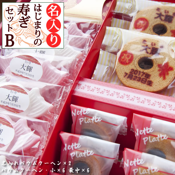 商品イメージ左の画像が商品画像です。クリックして頂くとより大きな画像をご覧になれます。セット内容名前入りバウムクーヘン×2バウムクーヘン・小(プレーン)×3バウムクーヘン・小(いちご)×3もなか皮(紅)×3もなか皮(白)×3粒あん×6箱サイズ約370×310×50mm商品サイズ名前入りバウムクーヘン:直径:約8.2cm・高さ:約1.5cmバウムクーヘン・小:直径:約4.5cm・高さ:約1.5cm焼き具合により多少前後する場合がございます。もなか:約9.5cm×5.5cmもなかのお名入れ「名前」「ふりがな」「生年月日(和暦)」をお入れいたします。漢字、ひらがな、カタカナ、アルファベットに対応いたします。ひらがな、カタカナ、アルファベットの場合は、ふりがなは入りません。お名入れご不要でも承ります。お名入れご不要の際はラベルシールはお付けいたしません。バウムクーヘンのお名入れ「名前」「ふりがな」「生年月日(西暦)」をお入れいたします。5文字以内、漢字、ひらがな、カタカナ、アルファベットに対応いたします。ひらがな、カタカナ、アルファベットの場合は、ふりがなは入りません。名入れに使用しているインクは食品衛生法をクリアした可食インクを使用しております。原材料表示に関しましては法令上、添加物の扱いになるため、着色料(食用赤色102・106・青色1・黄色4)と表示しております。お名入れご不要でも承ります。お名入れご不要の際は、お名前・生年月日ご不要で絵柄のみのパターンか、無地のバウムクーヘンのいずれかをお選びください。名前入りバウムクーヘンについて《素材(原材料)》鶏卵、砂糖、小麦粉、マーガリン、植物油脂、乳主原料、牛乳、希少糖含有シロップ、コーンスターチ、果糖ブドウ糖液糖、水あめ、食塩、寒天、ソルビトール、乳化剤、膨張剤、香料、酒精、脂肪酸、セルロース、増粘剤(キサンタン)、ホエイソルト、トレハロース、酸味料、着色料(カロテン,ベニコウジ,食用赤色102・106・青色1・黄色4P)《アレルギー物質》小麦、卵、乳《賞味期限》約30日《原産国》日本バウムクーヘン・小(プレーン)について《素材(原材料)》鶏卵、砂糖、小麦粉、マーガリン、植物油脂、乳主原料、牛乳、希少糖含有シロップ、コーンスターチ、果糖ブドウ糖液糖、水あめ、食塩、寒天、ソルビトール、乳化剤、膨張剤、香料、酒精、脂肪酸、セルロース、増粘剤(キサンタン)、ホエイソルト、トレハロース、酸味料、着色料(カロテン)《アレルギー物質》小麦、卵、乳《賞味期限》約30日《原産国》日本バウムクーヘン・小(いちご)について《素材(原材料)》鶏卵、砂糖、小麦粉、マーガリン、植物油脂、乳主原料、牛乳、希少糖含有シロップ、コーンスターチ、果糖ブドウ糖液糖、水あめ、苺、食塩、寒天、ソルビトール、乳化剤、膨張剤、香料、酒精、脂肪酸、セルロース、増粘剤(キサンタン)、ホエイソルト、トレハロース、酸味料、着色料(カロテン,ベニコウジ,コチニール)《アレルギー物質》小麦、卵、乳《賞味期限》約30日《原産国》日本もなか皮(紅)について《素材(原材料)》もち米(国内産)、コチニール色素《賞味期限》約90日《原産国》日本もなか皮(白)について《素材(原材料)》もち米(国内産)《賞味期限》約90日《原産国》日本粒あんについて《素材(原材料)》小豆(北海道産)、砂糖、還元水飴、寒天《内容量》40g(1袋)《賞味期限》約90日《原産国》日本納期営業日9時までの注文は3営業日程度での発送となります。(※同梱商品がある場合はこの限りではありません)(※数量が多い場合はこの限りではありません。)(※前入金決済をお選びの場合はご入金確認後からのお手配となります。)(※ご注文内容に確認事項のある場合はこの限りではありません。)(※写真入りカードをお選びいただいた場合はお写真の送付をお待ちするため、この限りではありません。)重要事項お客様からのご注文に応じてオーダーメイドでお名前をお入れする関係上、注文内容のご変更やキャンセルにつきましては、弊店からの受注確認メールの送信をもって締切とさせていただきます。それ以降のご変更やキャンセルは一切お受けできません。あらかじめご了承の上、ご注文くださいませ。注意事項直射日光・高温多湿を避けてください。焼き菓子の特性上、色、大きさ、形にバラつきがございます。あらかじめご了承くださいませ。のし・ラッピングおのし、ラッピング共に無料サービスです。包装紙でラッピングいたします。※包装紙不要、もしくはご自宅用のご指示がない際はラッピングいたします。カード命名カード、メッセージカード(ギフトカード)、ウェディングカードを無料でご用意いたします。利用例出産内祝 出産内祝い 内祝い お返し 出産祝いのお返し お支払い方法につきまして コンビニ決済、銀行振込でのお支払いの場合はご入金確認からの手配となりますので、通常納期以上にお時間を頂戴する場合がございます。お急ぎのお客様はクレジットカード決済、代金引換をお選び下さい。なお、お支払い総額が